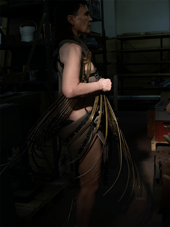 Body Control shows a wide variety of designs. There are designers who protect the body with their works, others see the body as divine, others respond to the feasible ideal image. There are also designers who use the body as material or, on the contrary, literally cross the body boundary and create an interaction between body and design.