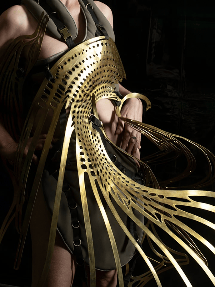 Experiencing fashion ranges from spiritual solace to discomfort. Garments can enforce uniformity or foster artistic expression. How do programmable garments express our bodies? Can fashion technology reorient not only our gestures, our wellbeing, our experience of others, but also our creative perspectives? Can fashion shelter us from others, from a dystopian future, or is it distorting the collective notions of ourselves?