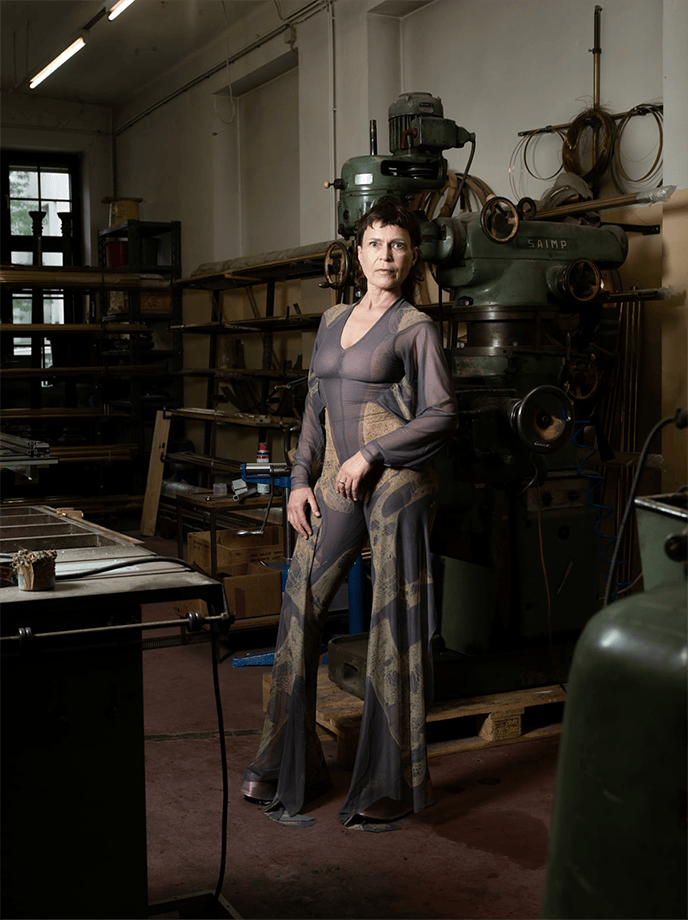 Throughout her work the main focus is on the human being, one’s body, senses and perception, performing in an actual or virtual reality. Gradually the designer is taking away all restrictions and practical considerations in fashion towards the real expression of the self and a multi-dimensionally developed personality.