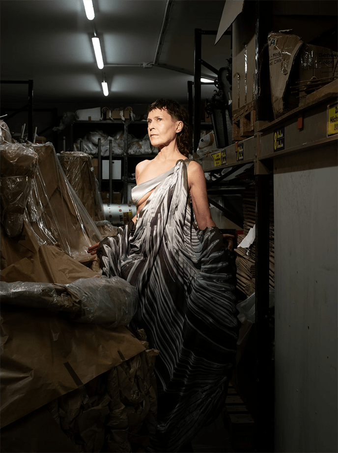 Chuck Reyes photographes the ‘Crincle #2 Dress’, a collaboration between Flora Miranda and Esther Stocker. Styled by Jeremie Bacque.